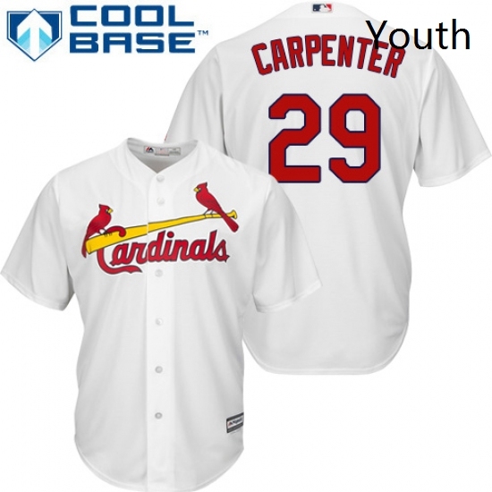 Youth Majestic St Louis Cardinals 29 Chris Carpenter Replica White Home Cool Base MLB Jersey