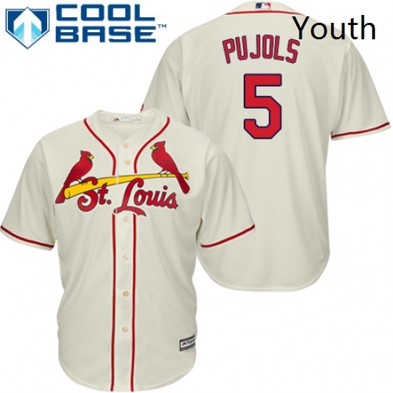 Youth Majestic St Louis Cardinals 5 Albert Pujols Authentic Cream Alternate Cool Base MLB Jersey