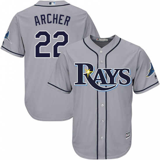 Home>MLB>Tampa Bay Rays>Youth>Youth Majestic Tampa Bay Rays 22 Chris Archer Replica Grey Road Cool Base MLB Jersey
