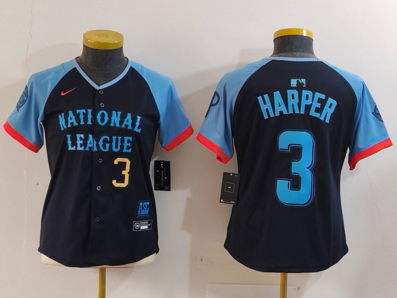 Home>MLB>2024 All Star>Youth>Youth National League 3 Bryce Harper Navy 2024 All Star Limited Stitched Baseball Jersey 8
