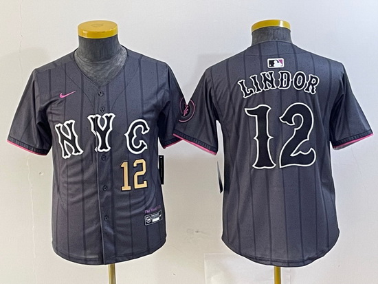 Home>MLB>New York Mets>Youth>Youth New York Mets 12 Francisco Lindor Graphite 2024 City Connect Limited Stitched Baseball Jersey 2