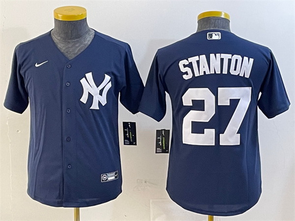 Youth New York Yankees 27 Giancarlo Stanton Navy Cool Base Stitched Baseball Jersey