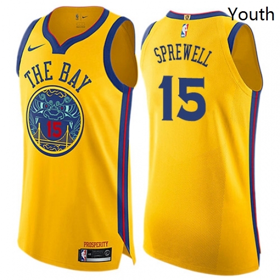 Youth Nike Golden State Warriors 15 Latrell Sprewell Swingman Gold NBA Jersey City Edition