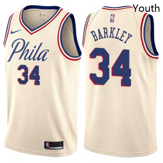Youth Nike Philadelphia 76ers 34 Charles Barkley Swingman Cream NBA Jersey City Edition