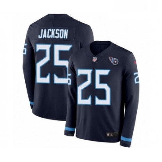 Youth Nike Tennessee Titans 25 Adoree Jackson Limited Navy Blue Therma Long Sleeve NFL Jersey