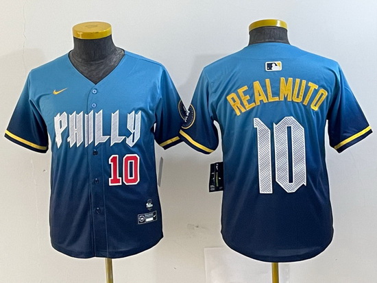 Youth Philadelphia Phillies 10 J T Realmuto Blue 2024 City Connect Limited Stitched Baseball Jersey 4