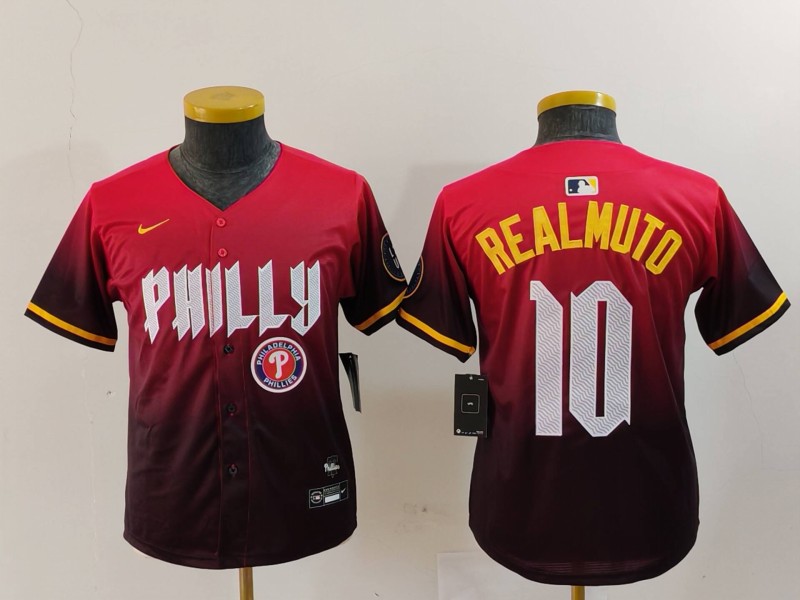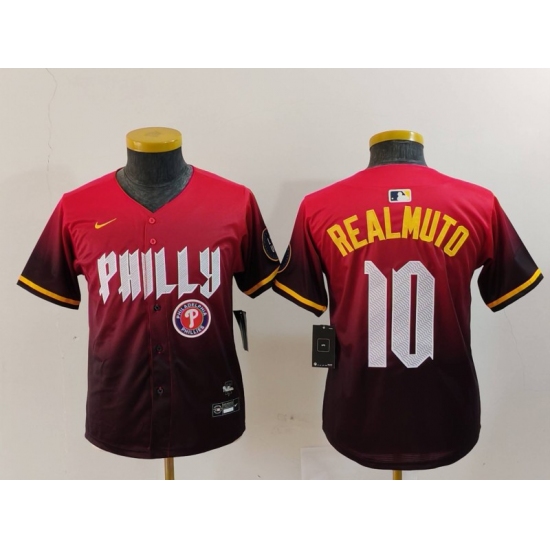 Youth Philadelphia Phillies 10 J T Realmuto Red 2024 City Connect Limited Stitched Baseball Jersey 2