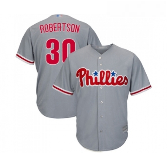 Home>MLB>Philadelphia Phillies>Youth>Youth Philadelphia Phillies 30 David Robertson Replica Grey Road Cool Base Baseball Jersey
