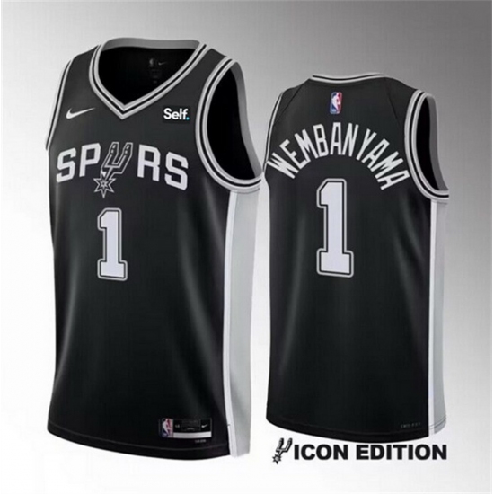 Youth San Antonio Spurs 1 Victor Wembanyama Black Icon Edition Stitched Jersey