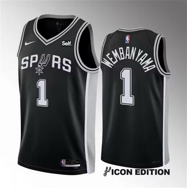 Home>NBA>San Antonio Spurs>Youth>Youth San Antonio Spurs 1 Victor Wembanyama Black Icon Edition Stitched Jersey