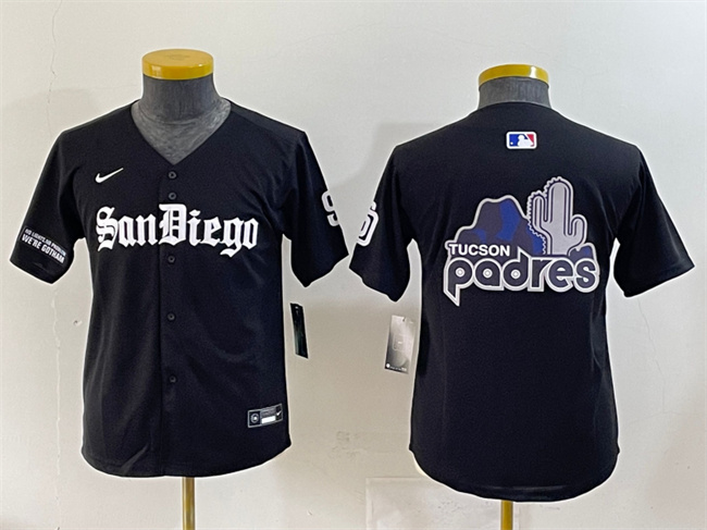 Home>MLB>San Diego Padres>Youth>Youth San Diego Padres Team Big Logo Black Gothic Edition Vapor Limited Stitched Baseball Jersey