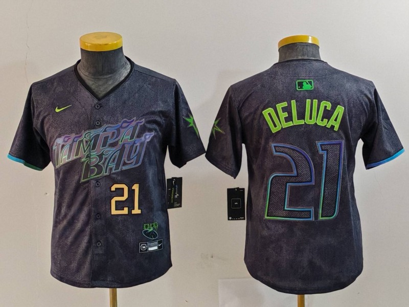 Home>MLB>Tampa Bay Rays>Youth>Youth Tampa Bay Rays 21 Jonny DeLuca Charcoal 2024 City Connect Limited Stitched Baseball Jersey 3