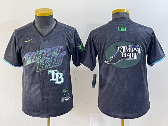 Youth Tampa Bay Rays Team Big Logo Charcoal 2024 City Connect Limited Stitched Baseball JerseyS 2