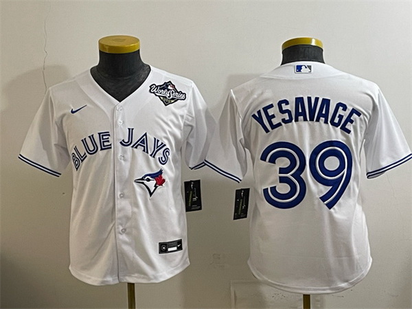 Home>MLB>Toronto Blue Jays>Youth>Youth Toronto Blue Jays 39 Trey Yesavage White 2025 World Series Cool Base Stitched Baseball Jersey