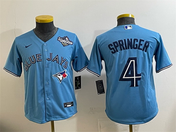 Home>MLB>Toronto Blue Jays>Youth>Youth Toronto Blue Jays 4 George Springer Blue 2025 World Series Cool Base Stitched Baseball Jersey